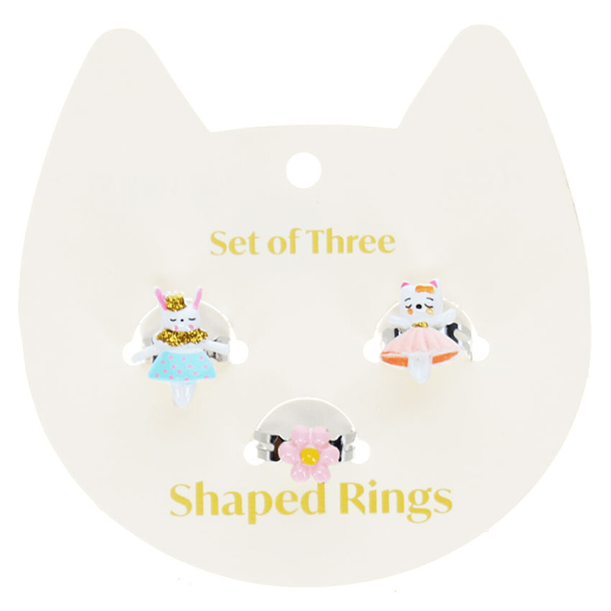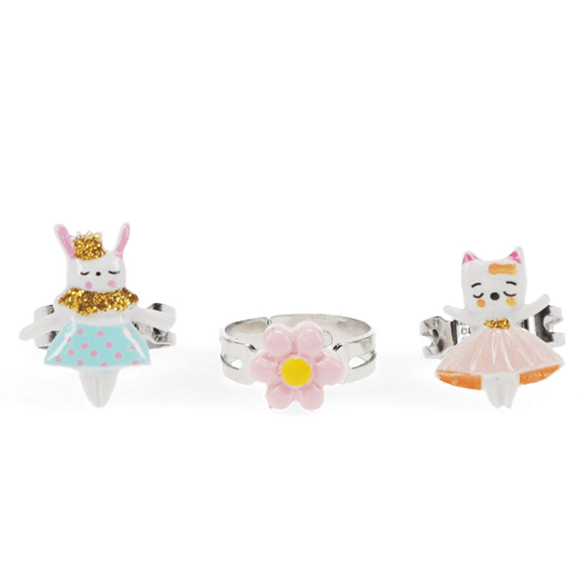 - Modèle : Lot de 3 Bagues Pailletées - Lapin, Chat et Fleur