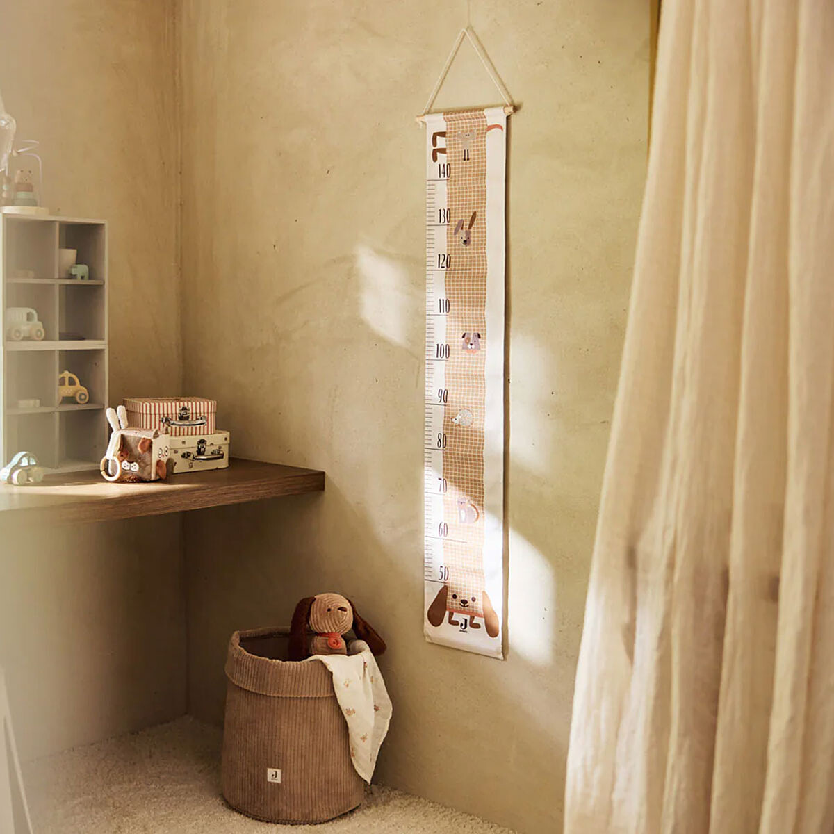 Avec la Toise Murale Animal Friends Jollein, la famille gardera un repère simple et rassurant pour observer l’évolution de votre enfant au fil des mois. Accrochée au mur, elle deviendra une déco tendre et ludique grâce à ses petits animaux, idéale pour créer un rituel : se mesurer ensemble après la sieste du week-end ou avant de changer de taille de vêtements. Elle permettra de mesurer jusqu’à 110 cm, sans multiplier les marques sur le mur.