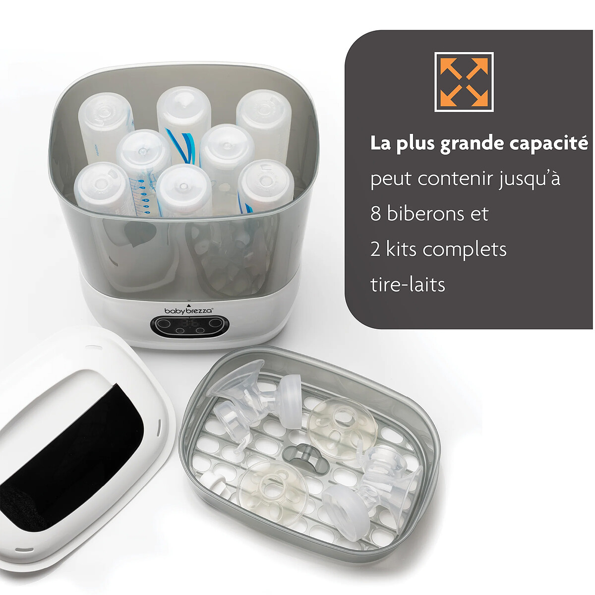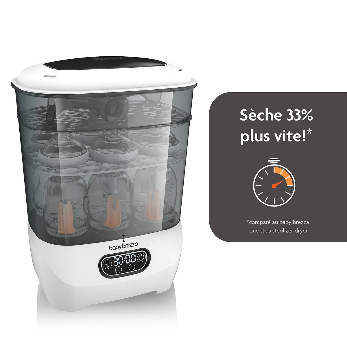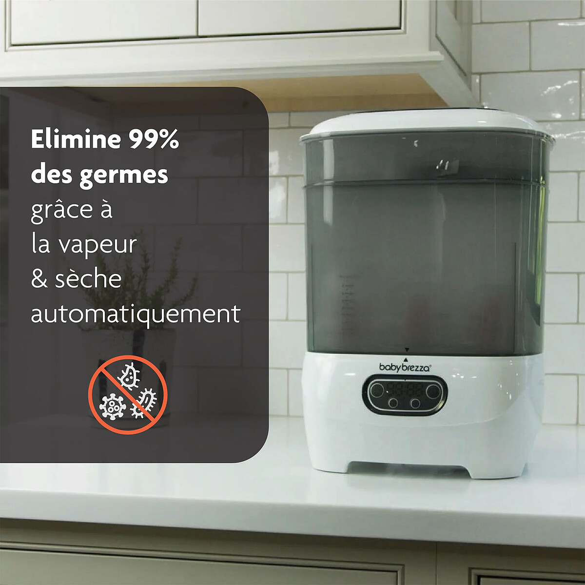 Le Stérilisateur Dryer Advanced Baby Brezza accompagnera la famille au quotidien pour garder biberons, pièces de tire-lait et petits accessoires propres, sans y passer des heures. Grâce à une stérilisation à la vapeur naturelle, il éliminera 99,9 % des germes sans ajout de produits chimiques. Avant une tétée ou un biberon de nuit, vous gagnerez en sérénité avec un cycle simple à lancer.