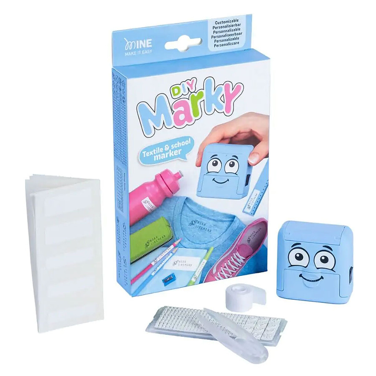 Le Tampon de Marquage Marky en bleu clair vous aidera à éviter les échanges et les pertes au quotidien. En quelques secondes, vous marquerez vêtements, accessoires ou petits objets, pour que tout revienne à la maison. Son petit visage amusant plaira aussi aux enfants, et la prise en main est pensée pour un usage simple, même dans l’urgence du matin.