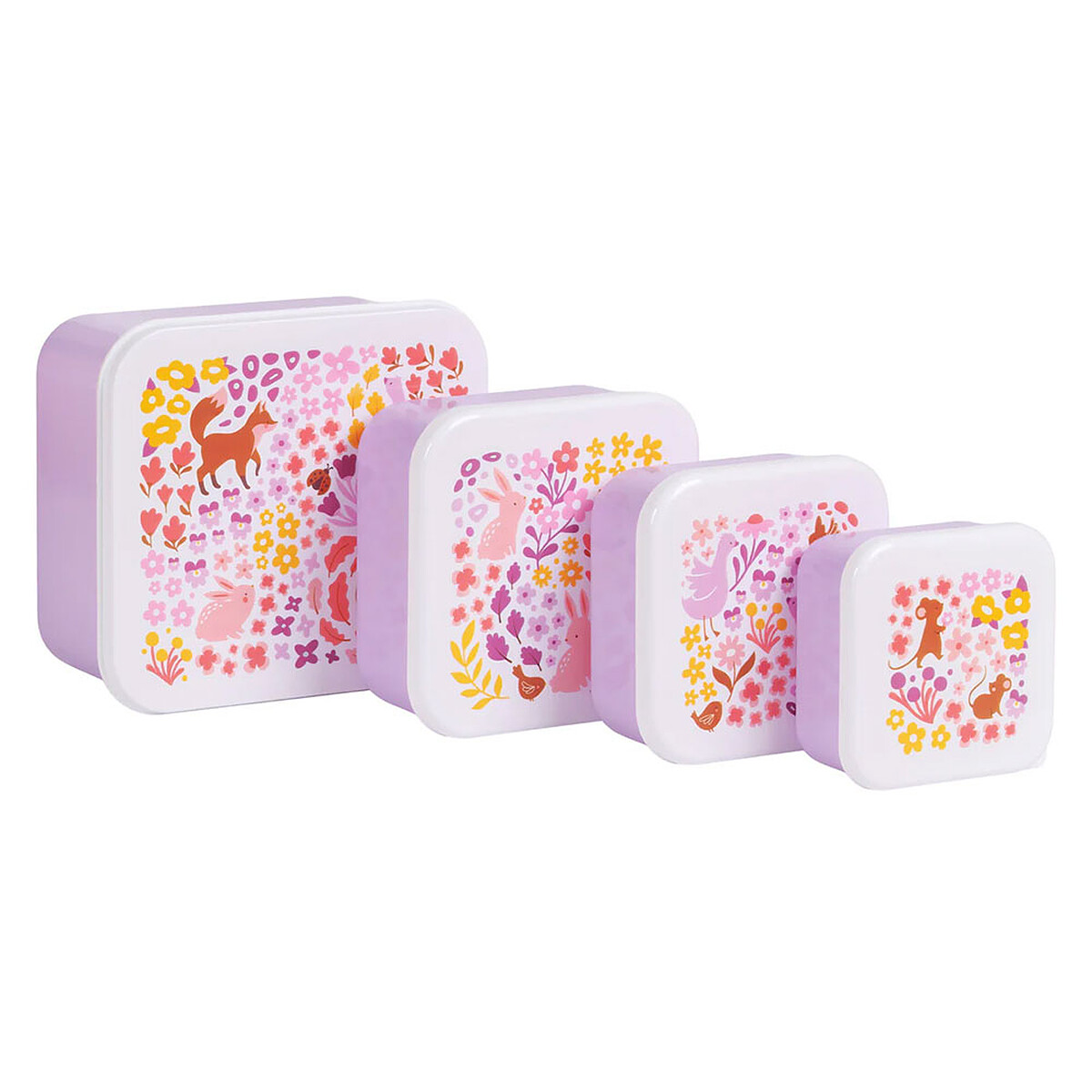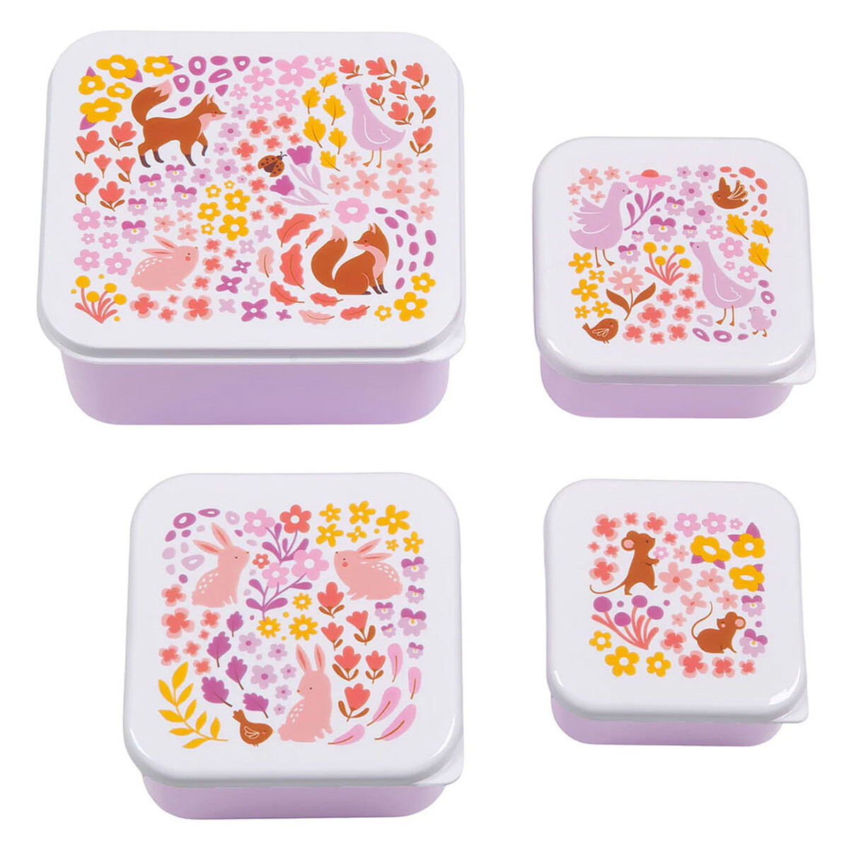 A Little Lovely Company Lot de 4 Boîtes à Goûter - Fleurs du Jardin |