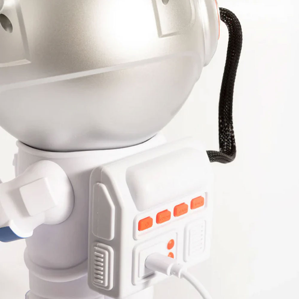 Pensé pour le quotidien, ce projecteur offrira une grande liberté d’orientation grâce à sa tête amovible pivotant à 360°. Votre bout de chou pourra ajuster l’ambiance à son envie avec la télécommande en forme de fusée : sélection des 8 effets visuels, choix parmi 4 vitesses d’affichage et réglage de la luminosité. De quoi créer un ciel personnalisé, soirée après soirée.