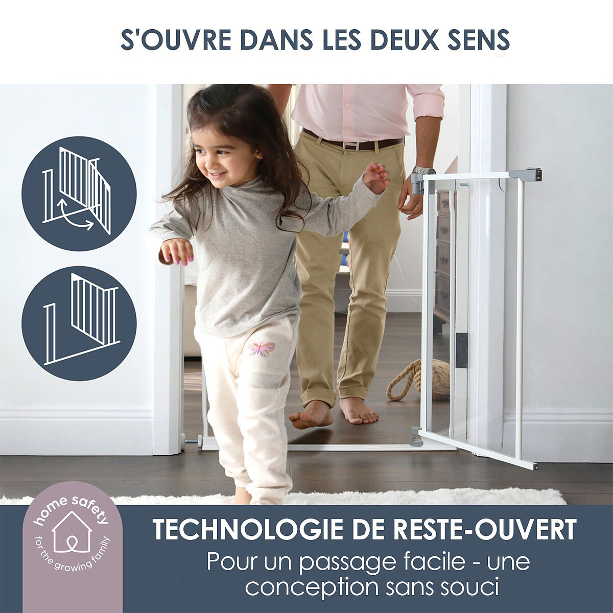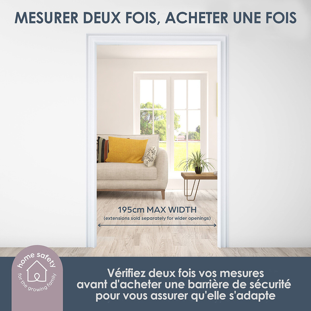 Fixée par vis, elle offrira une installation stable, particulièrement rassurante près des marches et des paliers. Vous pourrez l’utiliser sur des ouvertures de 74,5 à 195 cm, ce qui permettra de sécuriser aussi bien un passage standard qu’une zone plus large. Au quotidien, l’ensemble restera solide et fiable pour accompagner les déplacements de toute la famille.