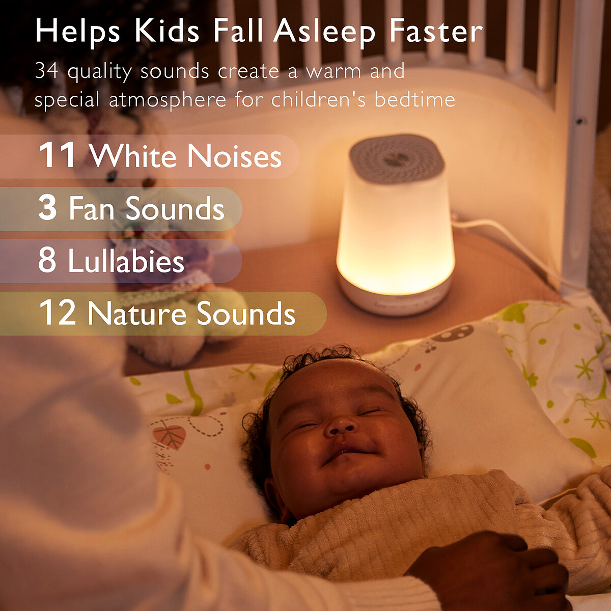 Cette machine met à disposition 34 sons de qualité pour s’adapter aux besoins de chaque famille : bruits blancs, ventilateurs, berceuses et sons naturels. Vous pourrez affiner l’atmosphère en réglant le volume de 40 à 110 dB, afin de couvrir les bruits de la maison ou d’apaiser les endormissements plus délicats. Pratique lors des siestes comme la nuit, à la maison.