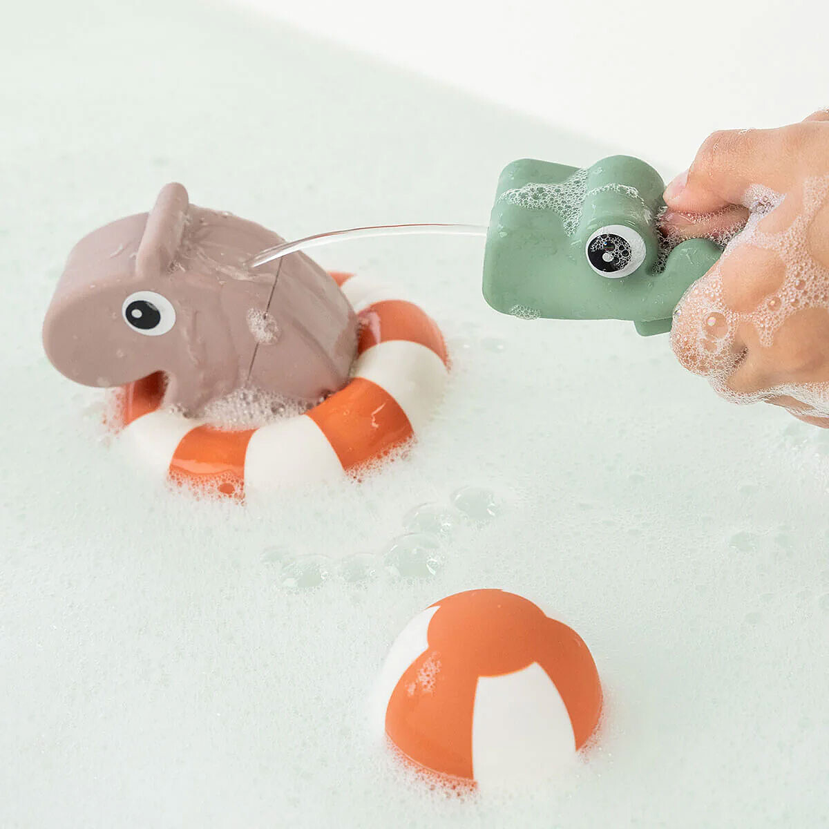 Pensé pour les tout-petits, ce set accompagnera les premiers jeux d’eau en stimulant motricité fine et coordination main-œil. Le crocodile est fourni avec un ballon à rayures : parfait pour varier les gestes, attraper, faire flotter, viser… De quoi créer de nouveaux scénarios à chaque bain, seul·e ou avec un adulte.