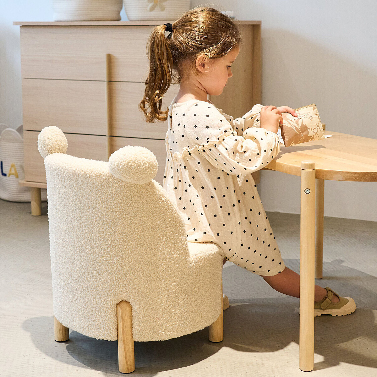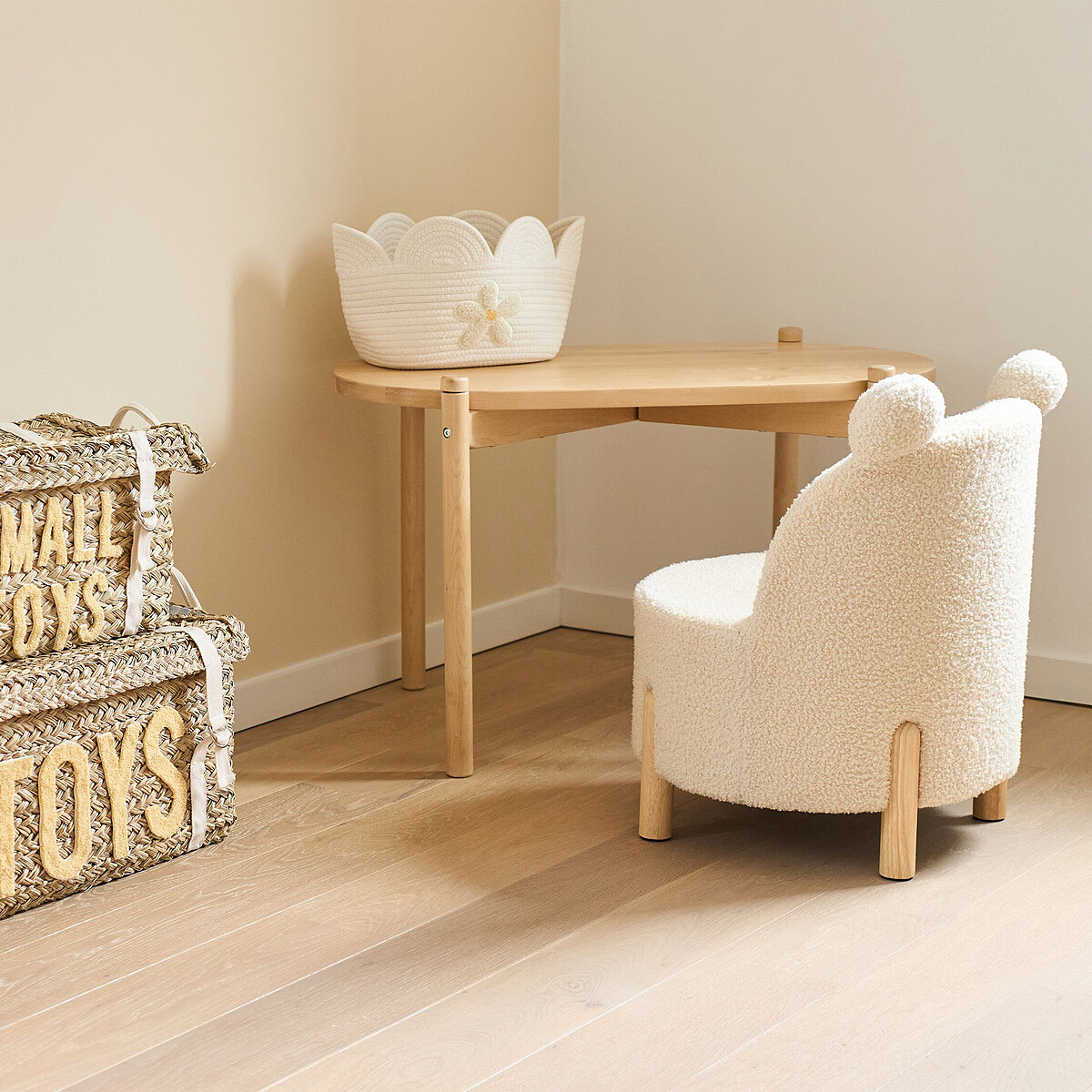 Avec la Chaise Enfant - Teddy Ecru de Childhome, votre tout-petit profitera d’un coin cosy à sa hauteur pour feuilleter un livre, écouter une histoire ou jouer calmement. Son revêtement ultra-doux et ses petites oreilles d’ours créent une ambiance rassurante, parfaite pour installer un rituel dans la chambre ou le salon.