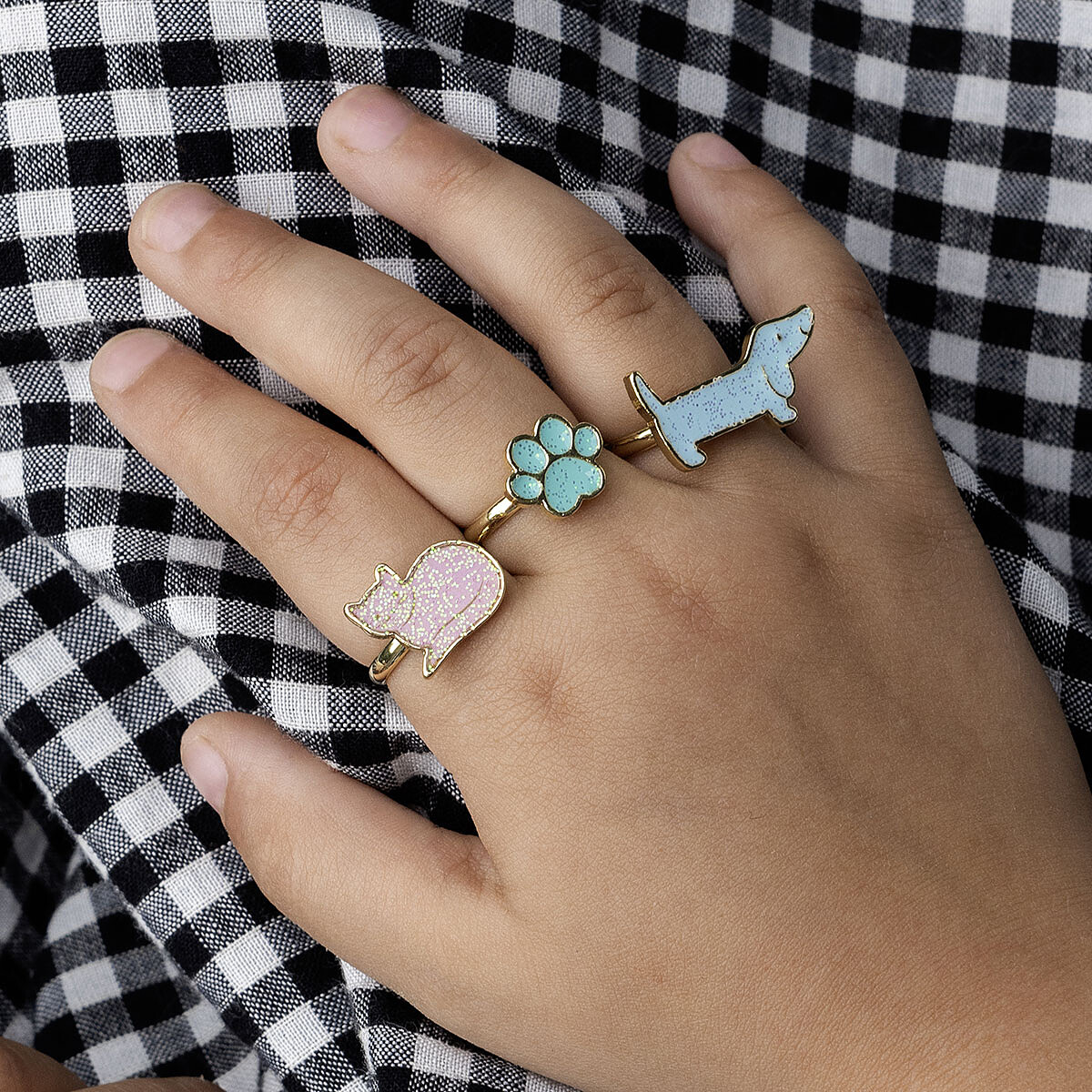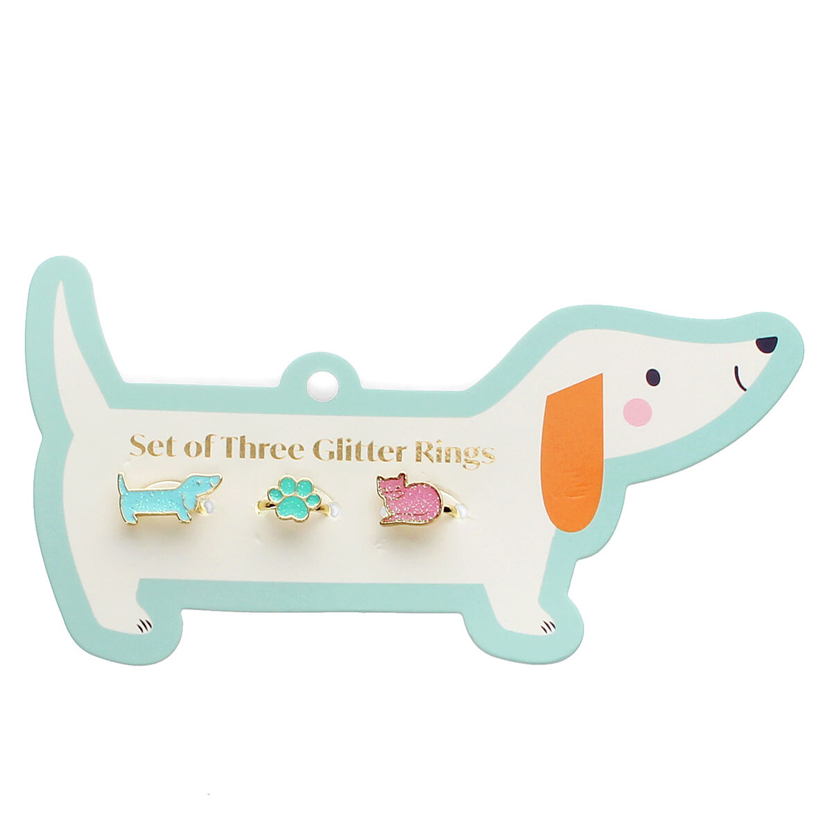Rex London Lot de 3 Bagues Pailletées - Chien |