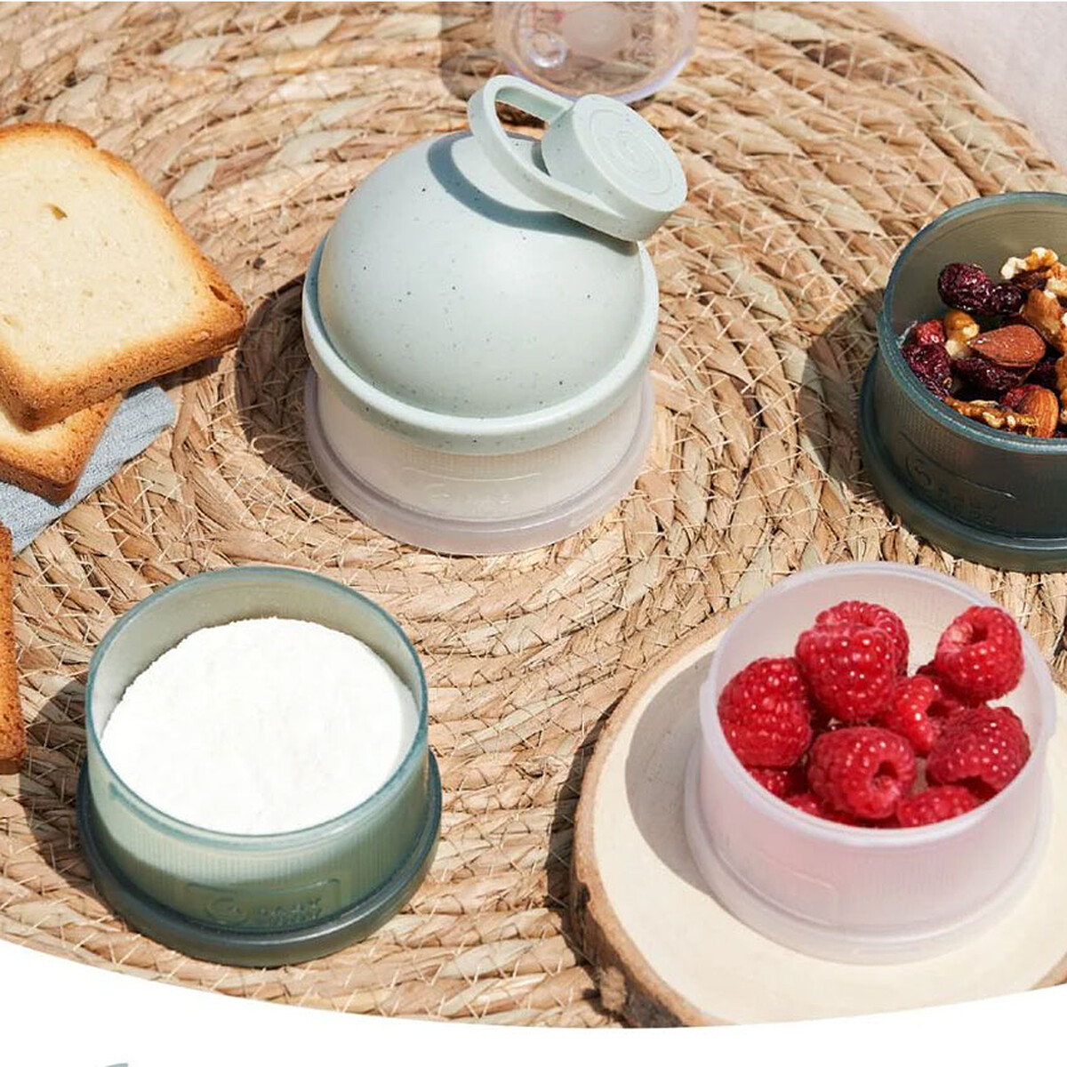 Conçue pour le quotidien des familles, elle se compose de quatre compartiments hermétiques : vous transporterez facilement de quoi couvrir une journée complète. Grâce au bec verseur et à son design ergonomique, le lait en poudre se versera proprement, sans en mettre partout, même d’une seule main. Les compartiments empilables et interchangeables se rangent facilement dans un sac à langer.