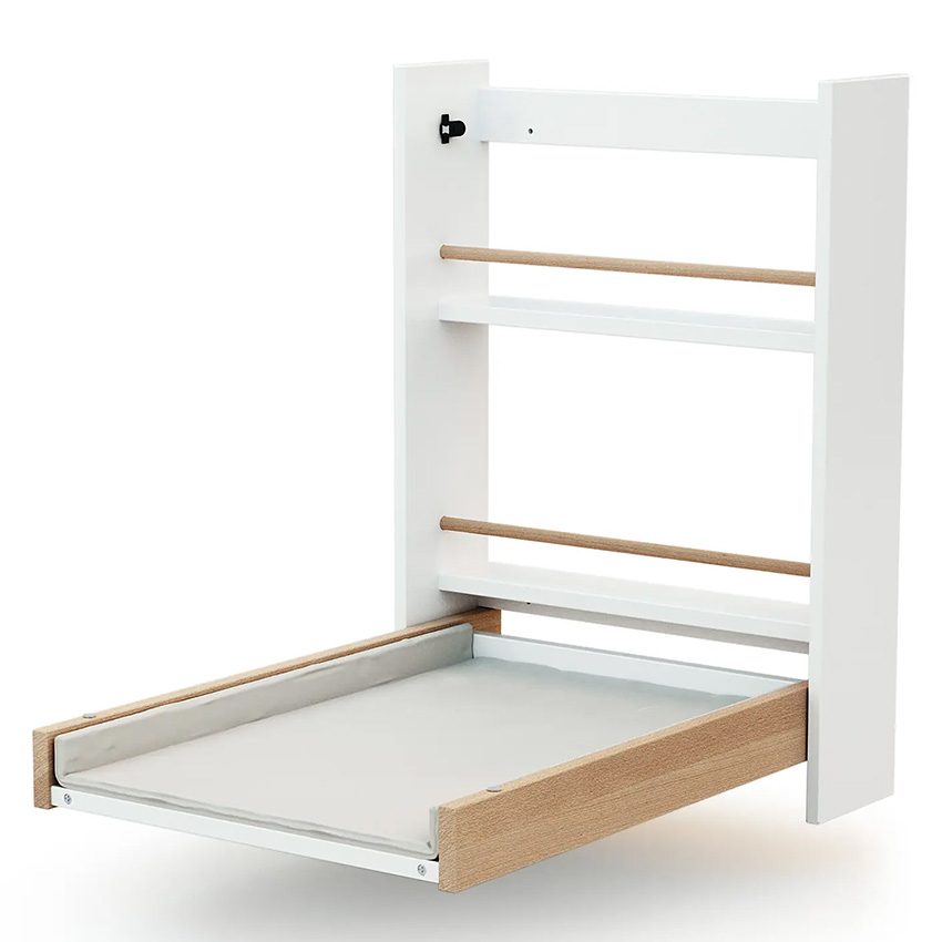 AT4 Table à Langer Murale Essentiel - Blanc et Hêtre |