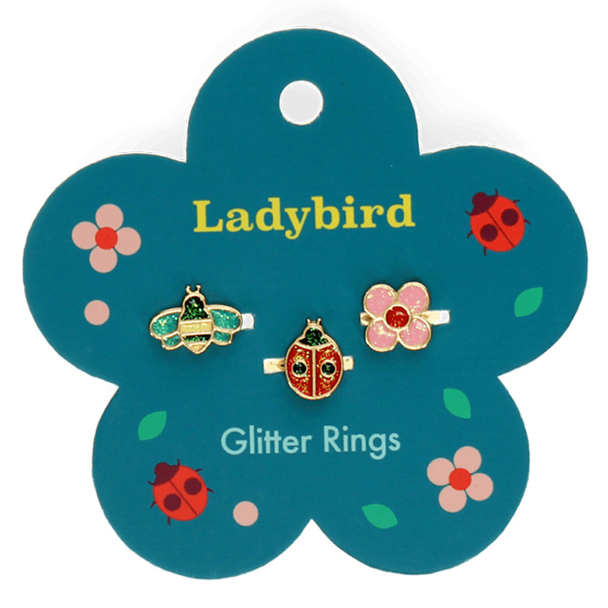 Rex London Lot de 3 Bagues Pailletées - Coccinelle |