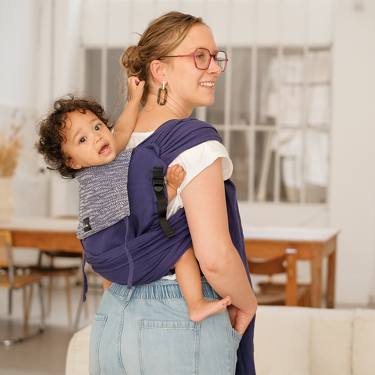 Avec le porte-bébé Neobulle P’tit Evo en coloris Indigo, vous retrouverez le confort enveloppant d’une écharpe tout en gardant une mise en place simple. Au quotidien, la ceinture se clipsera en un geste pour partir rapidement, puis les bretelles se noueront sans réglage préalable. Idéal si vous souhaitez porter souvent, sans vous sentir à l’aise avec les techniques de nouage.