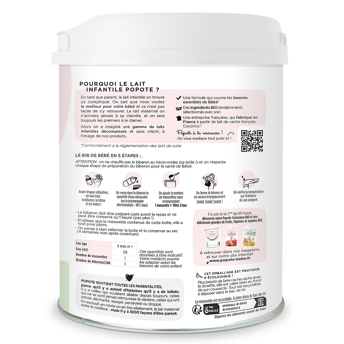Conçu pour répondre aux besoins spécifiques de votre enfant, le Lait 2ème Âge Bio Popote en poudre accompagnera les repas du quotidien entre 6 et 12 mois environ. Élaborée à Montauban avec un expert du lait infantile biologique depuis 20 ans, sa formule se veut claire et transparente, pour aider les familles à choisir sereinement au moment de la diversification.