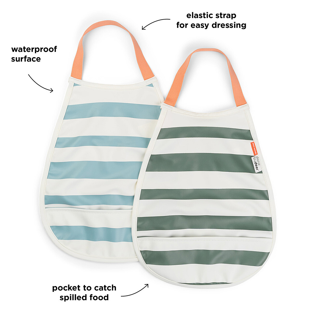 Done by Deer Lot de 2 Bavoirs Elastiques - Rayures Bleu et Vert |