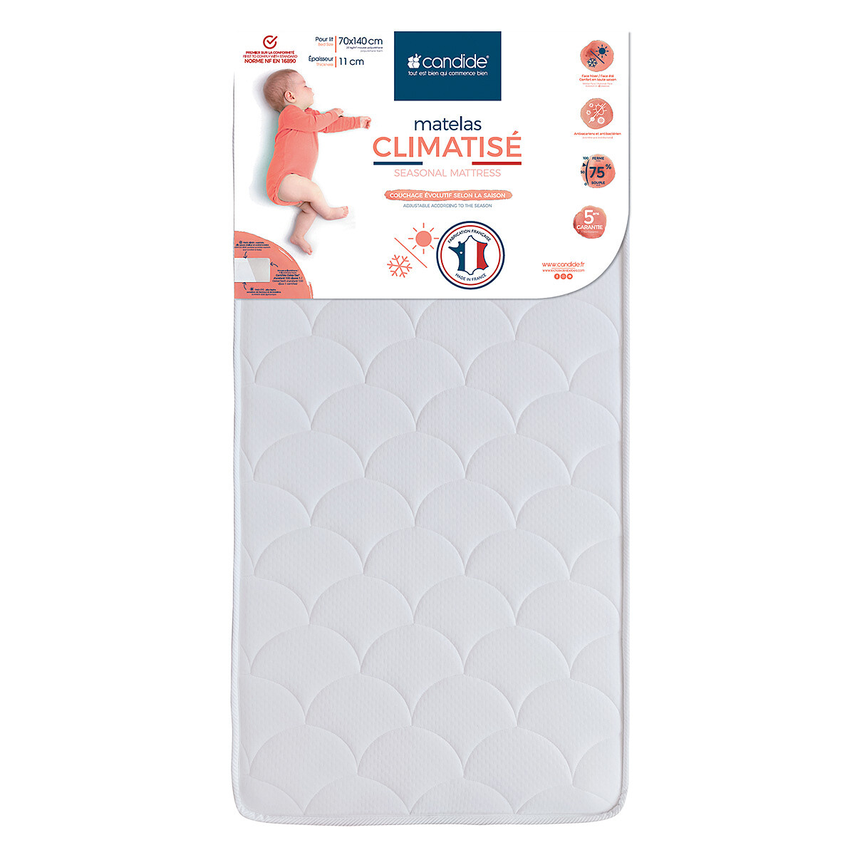 Le Matelas Climatisé Candide 70 x 140 cm accompagnera le sommeil de votre enfant tout au long de l’année grâce à ses deux faces adaptées aux saisons. En un geste, vous choisirez le bon côté grâce à l’étiquette repère. Idéal au quotidien, il offrira un couchage rassurant pour les nuits comme pour les siestes, à la maison ou dans une chambre plus fraîche.