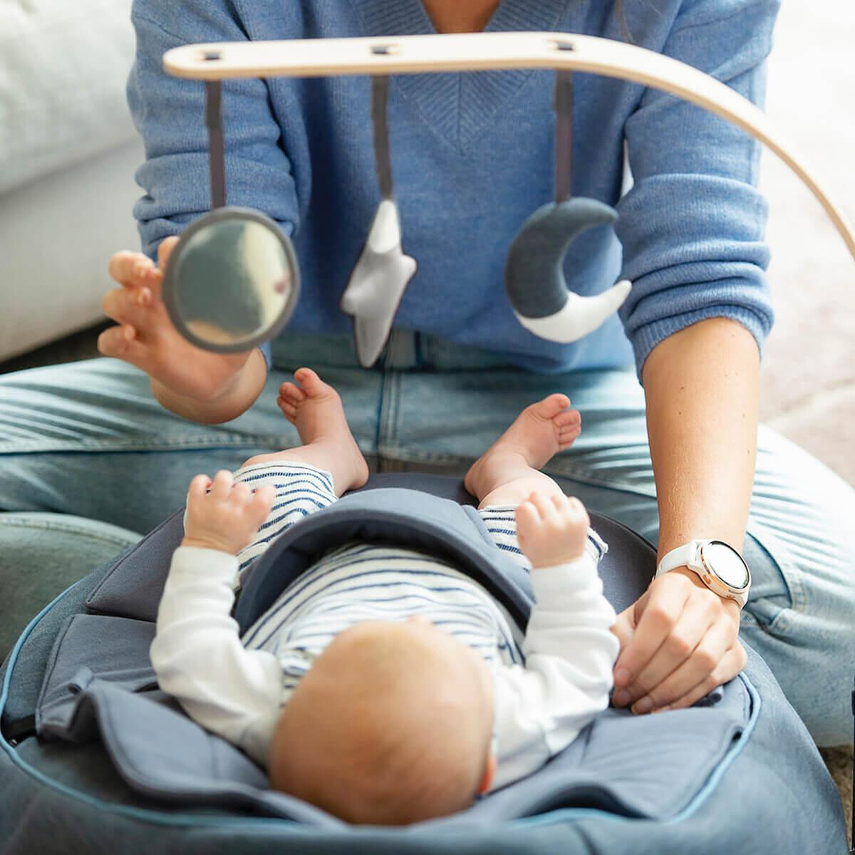 Pour accompagner les premiers moments d’éveil, l’Arche de Jeux Seat’n Swing Babymoov se fixera facilement sur le côté du Transat Doomoo Seat’n Swing. Sa base stable rassurera les adultes au quotidien, et son installation se fera en quelques gestes grâce au connecteur inclus. Lors d’un temps calme après le biberon, bébé pourra observer et attraper les jouets à son rythme.
