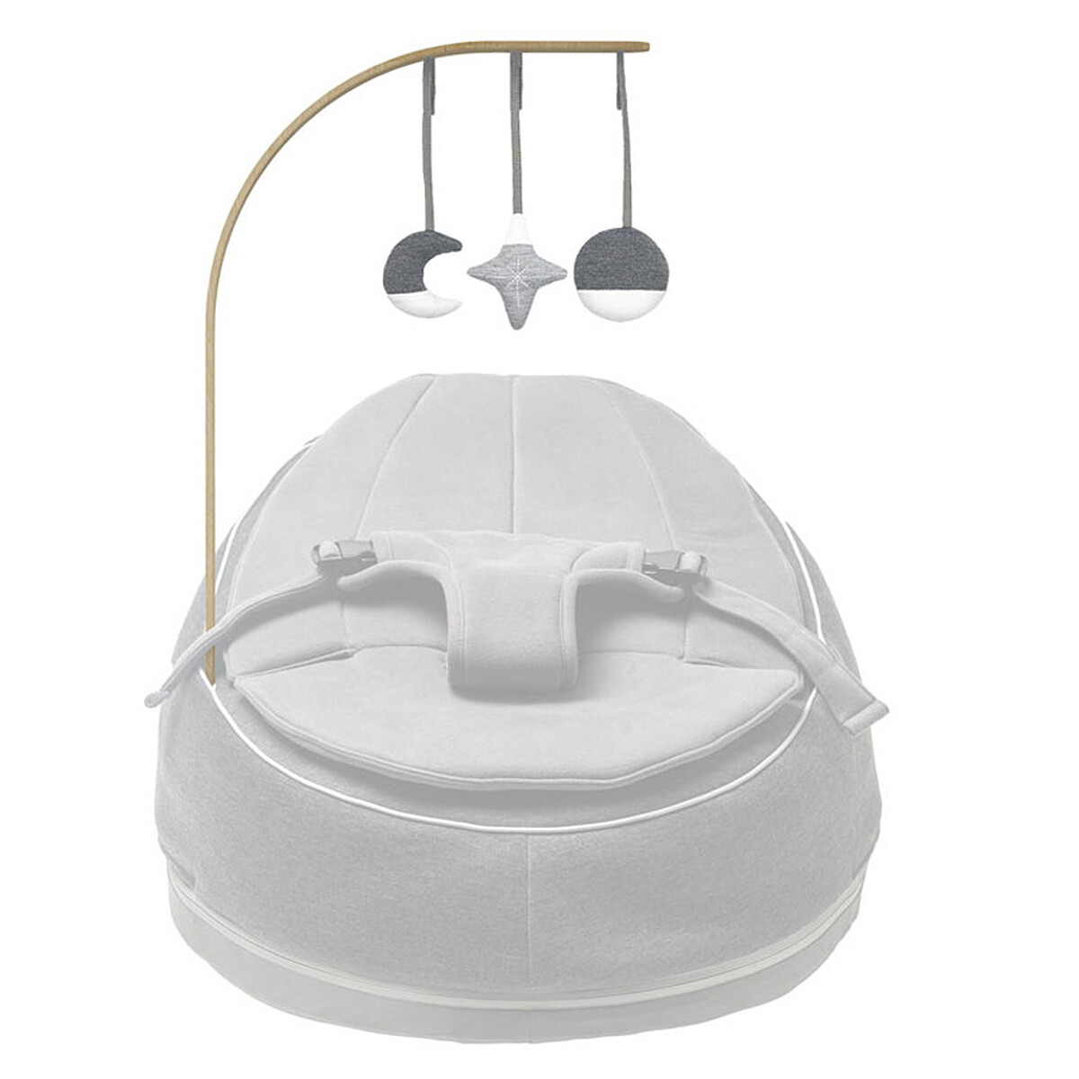 Au quotidien, vous apprécierez des jouets amovibles grâce à leur attache scratch, idéals pour un entretien simple : ils passent en machine. L’arche en bois, au design épuré, s’intégrera naturellement dans votre intérieur et complètera avec élégance le transat. Pour une séance d’éveil, un change ou une pause câlin, tout restera à portée, sans complication.