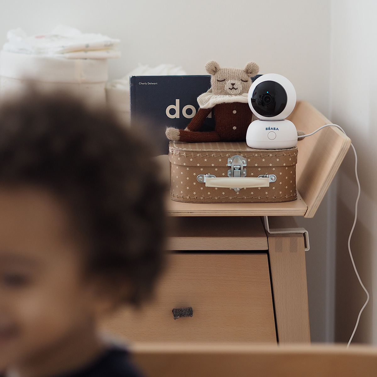 La caméra grand angle avec rotation 360°, capteur Full HD 1080p et vision infrarouge offrira une vue panoramique, de jour comme de nuit. Les détections de sons et de mouvements renforceront la surveillance, sans avoir à vérifier en continu. Vous pourrez ainsi suivre un endormissement ou une sieste en gardant les mains libres, tout en étant alerté·e en cas d’activité.