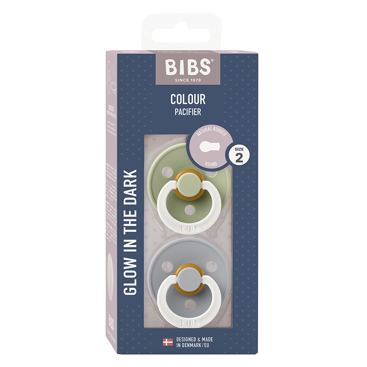 Imaginé par Bibs, le lot de 2 sucettes rondes Night Colour apaisera votre enfant lors des réveils nocturnes et l’accompagnera au moment de l’endormissement. Grâce à leur forme ronde en caoutchouc naturel, elles ont été pensées pour rappeler le sein et renforcer l’effet rassurant. À la maison comme en déplacement, vous aurez toujours une sucette de rechange sous la main.