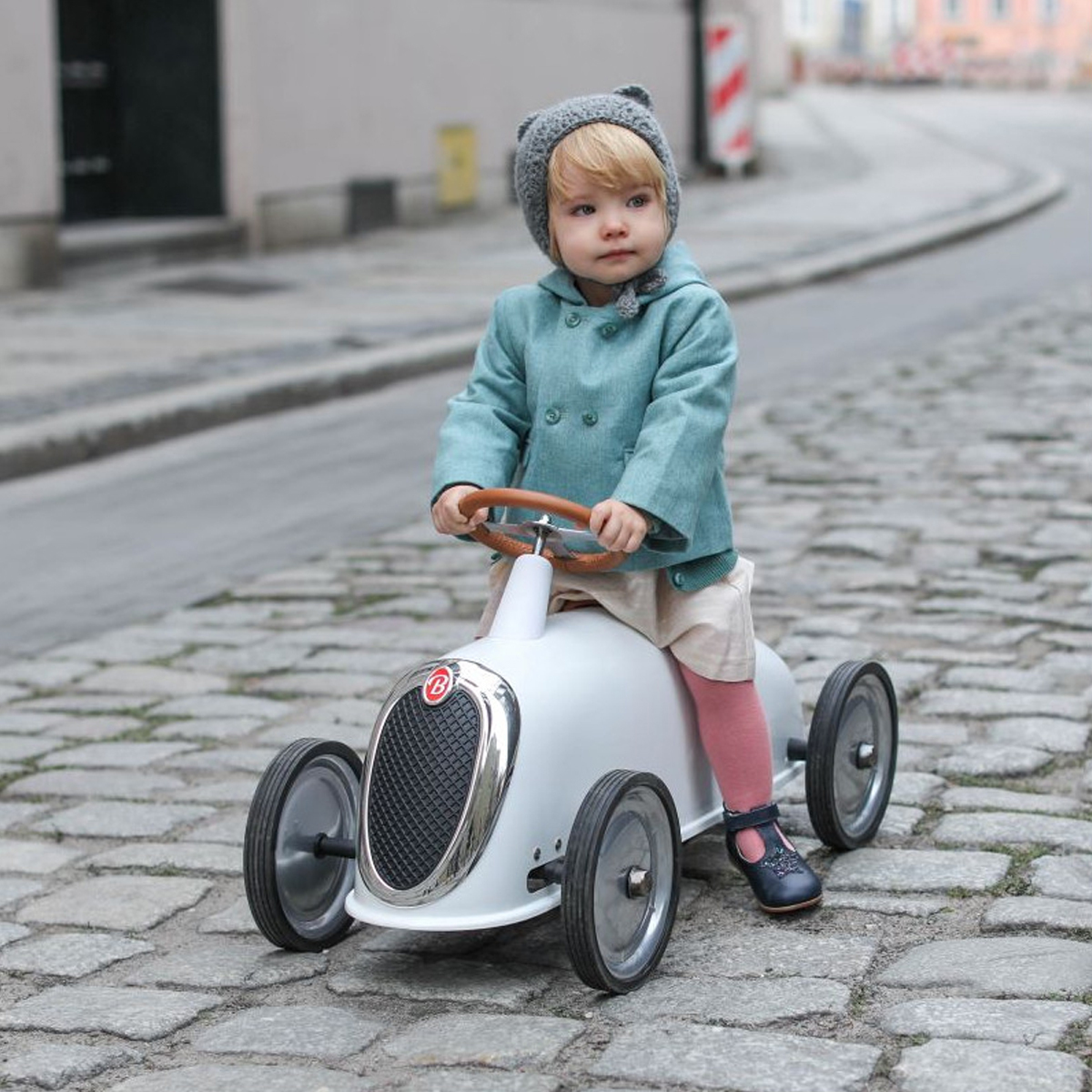 Robuste, ce porteur en métal accompagnera les usages du quotidien et les envies d’exploration. Ses grandes roues en caoutchouc faciliteront le déplacement avec aisance, en apportant de la stabilité et un roulement silencieux, même quand le jeu s’intensifie. Et quand l’enfant grandira, son look rétro chic restera un bel objet à garder.