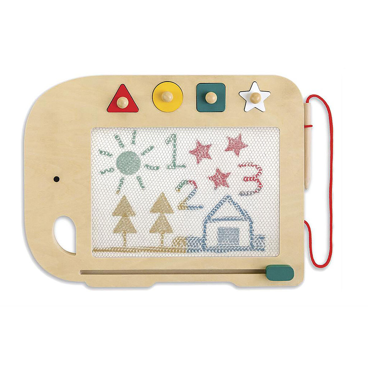 Pensée pour encourager la créativité, l’ardoise est fournie avec 4 tampons aimantés aux formes variées, parfaits pour varier les motifs et enrichir les dessins. Lors d’un moment calme après l’école ou pendant que les adultes s’occupent, votre enfant pourra composer, compléter, puis modifier à volonté. Le geste devient plus précis au fil des utilisations, et l’ardoise accompagnera facilement les premières envies d’expression.