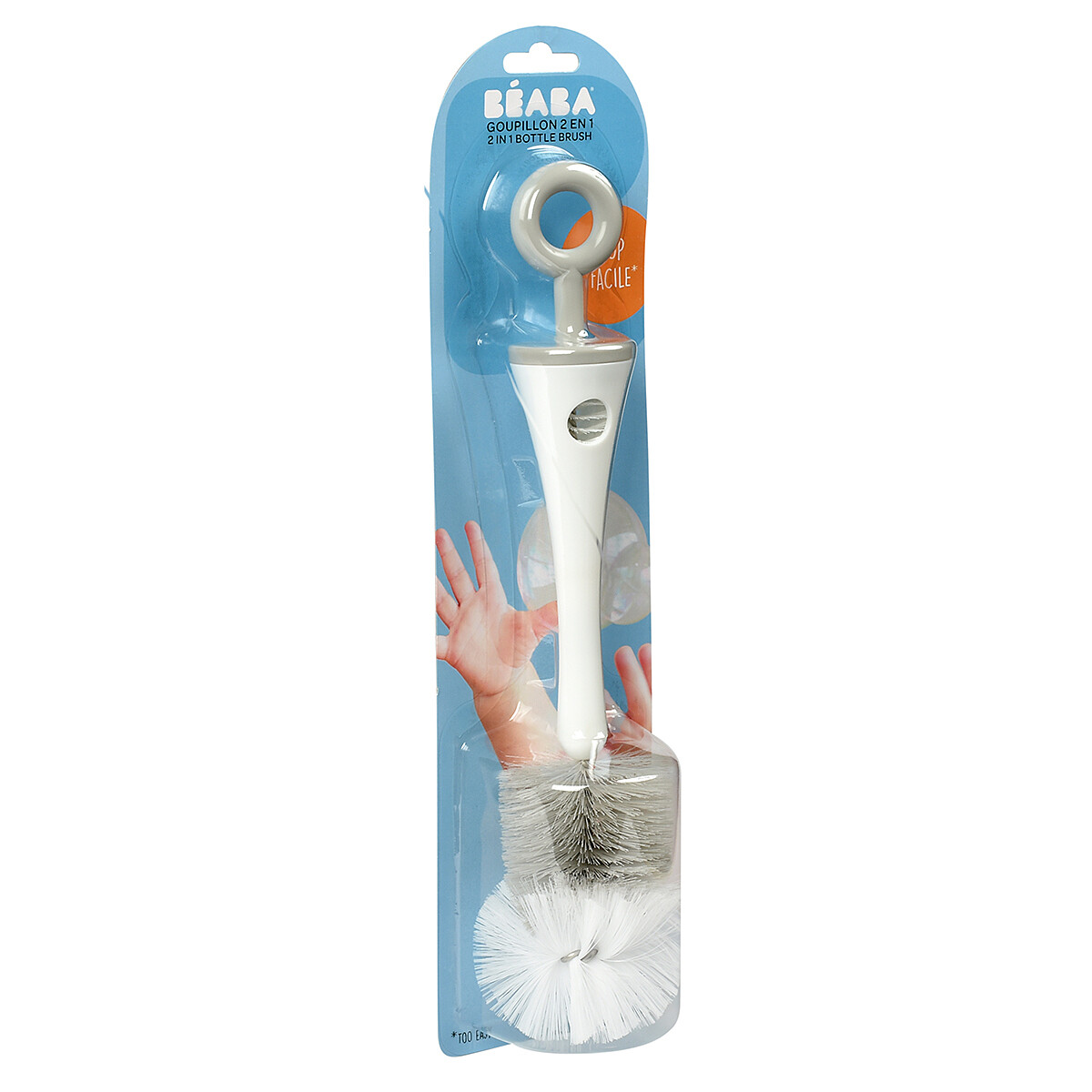Le Goupillon 2 en 1 Grey de Béaba accompagnera la routine d’hygiène au quotidien en facilitant un nettoyage soigné des biberons. Grâce à son grand goupillon dédié aux biberons, vous atteindrez plus facilement le fond et les parois, même après un repas pressé. À la maison comme en déplacement, il offrira un geste simple et efficace pour préparer le prochain biberon en toute sérénité.