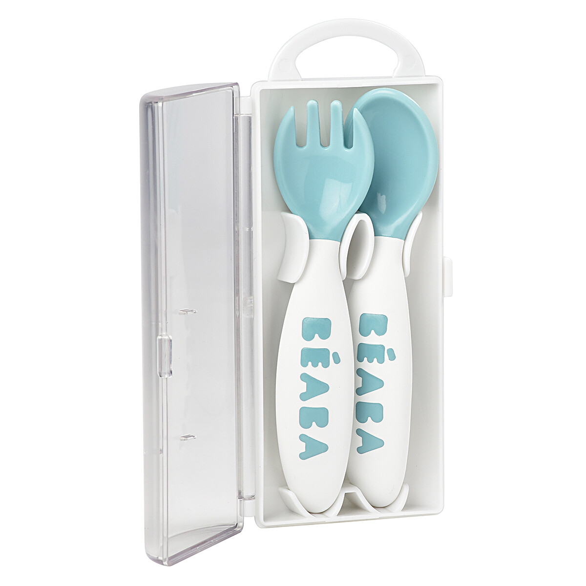 BÉABA Lot de 2 Couverts Ergonomiques 2ème Âge - Blue |