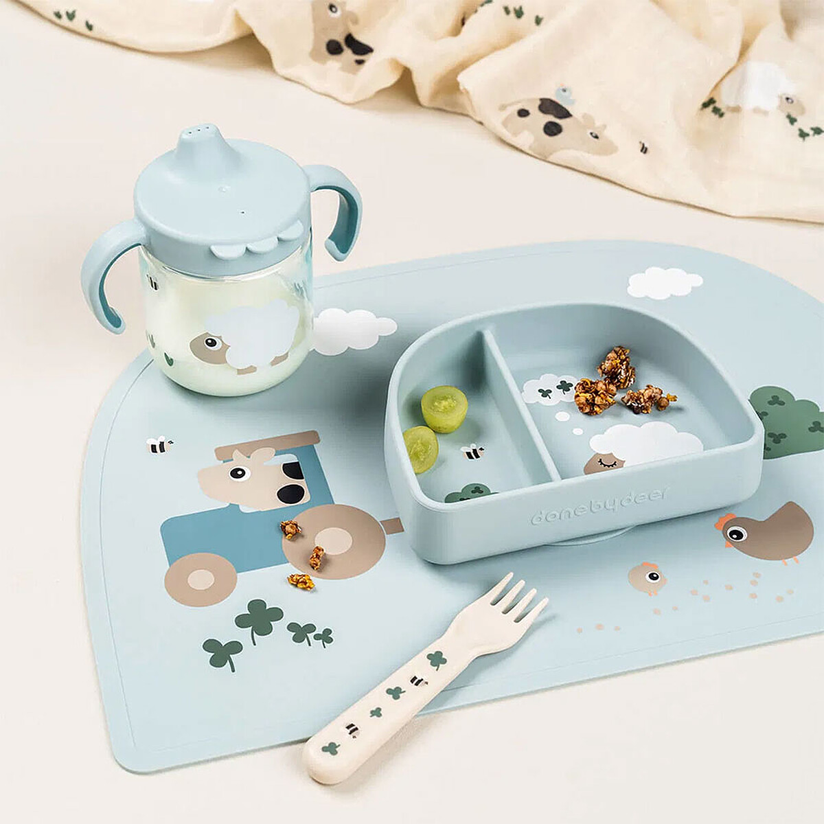 Bol Stick & Stay Compartimenté - Tiny Farm Bleu |