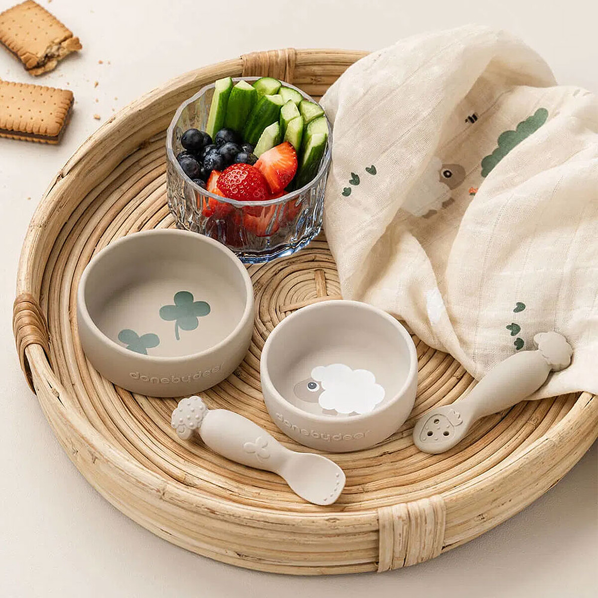 Le Lot de 2 Bols Done by Deer accompagnera bébé dès les premières cuillères comme lors des goûters plus consistants. Avec un grand bol de 190 ml et un petit de 120 ml, vous adapterez facilement les portions au fil des appétits. À table, leur format rassurant aidera toute la famille à proposer des repas variés, sans multiplier la vaisselle.
