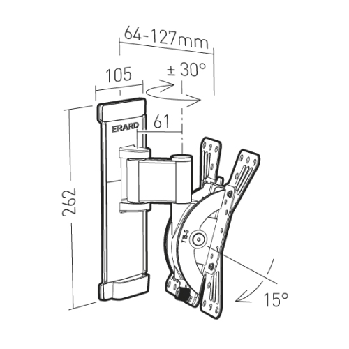 - Type : support mural inclinable et orientable avec déport