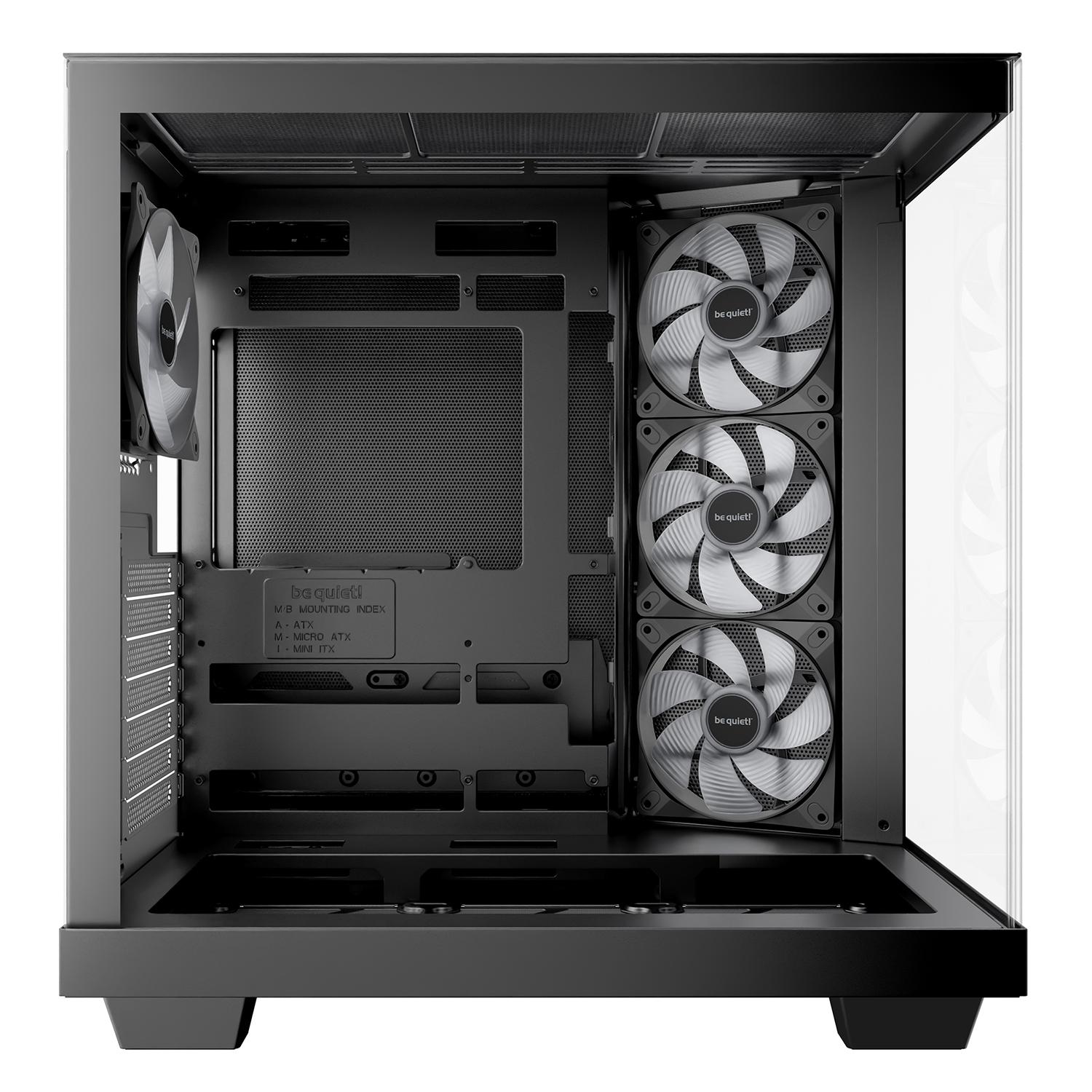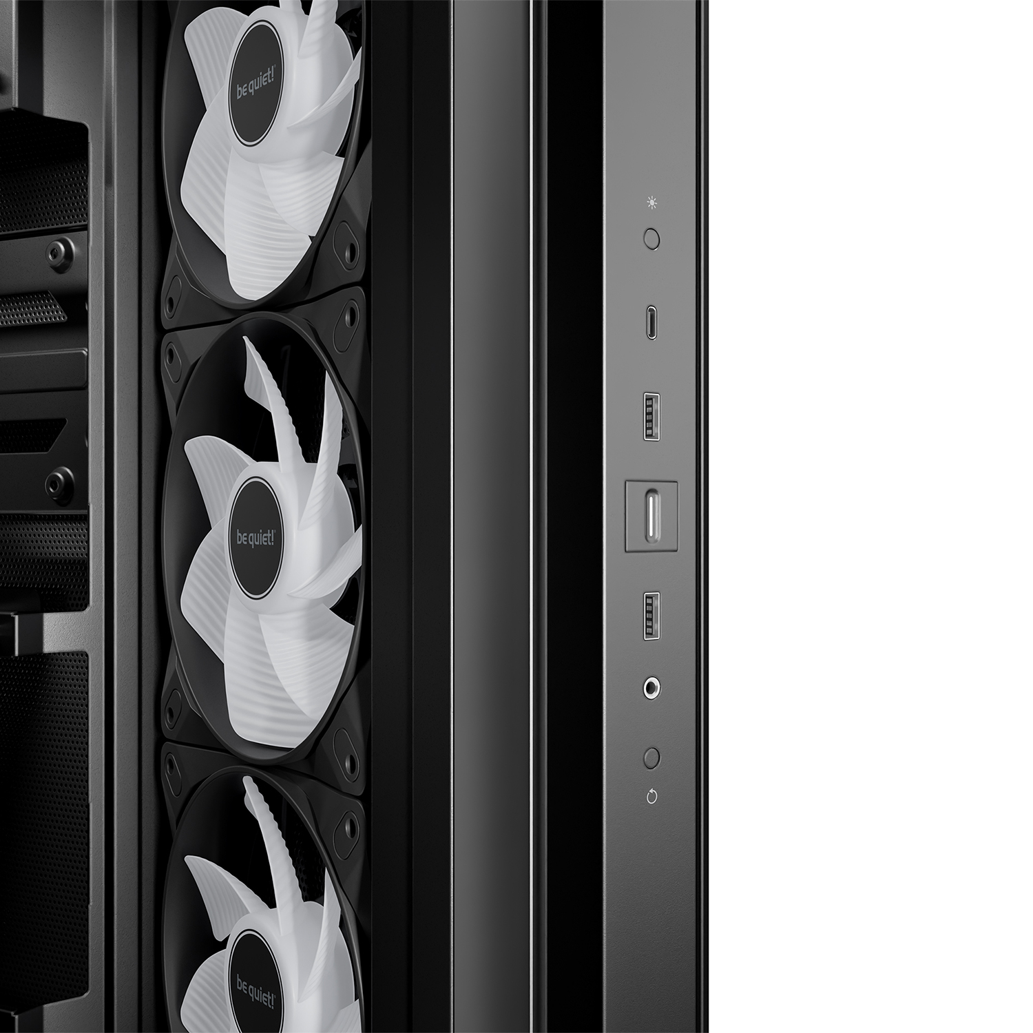 Latéral : 3 x 120 mm (3 x Pure Wings LX 120 mm PWM Reverse fourni) Dessus : 3 x 120 ou 2 x 140 mm Dessous : 3 120 mm Arrière : 1 x 120/140 mm (1 x Pure Wings LX 120 mm PWM fourni) |