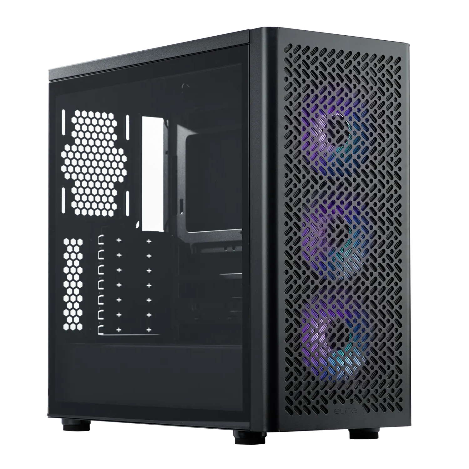 Boîtier moyen tour avec fenêtre latérale en verre trempé et façade Mesh + 3 ventilateurs 120 mm LED ARGB