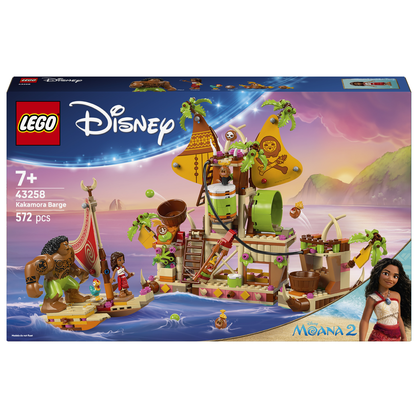- Figurines : 9 personnages LEGO Disney (Vaiana, Maui, Heihei, Kotu + 5 Kakamora)