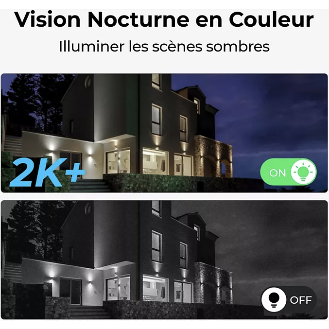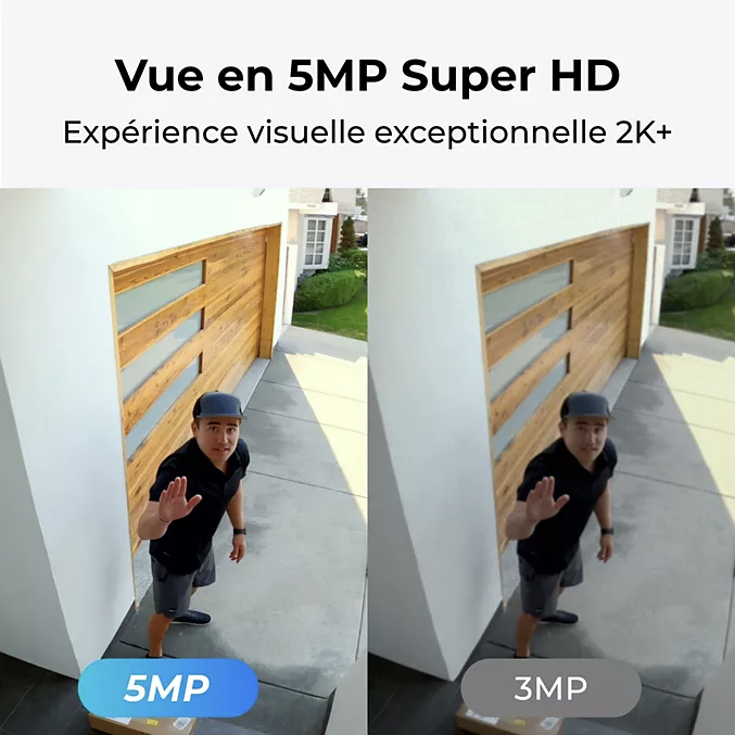 Côté image, profitez d’un rendu précis grâce au capteur 5 MP et à la résolution 2880 x 1620 à 15 ips, pratique pour distinguer un visage ou une plaque dans l’allée. Le champ de vision 105° couvre une zone large, tandis que la vision nocturne infrarouge maintient la surveillance une fois la nuit tombée, jusqu’à 10 m.