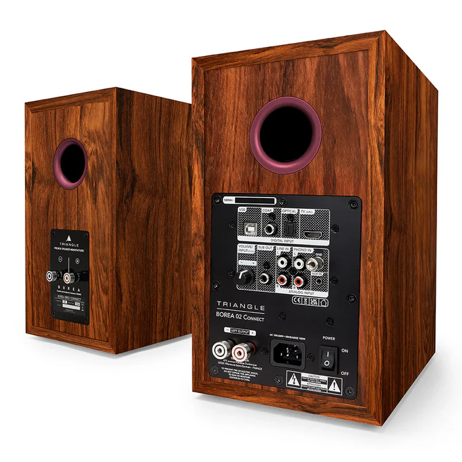 Commentaire vendeur : BOREA BR02 Connect - Bordeaux (la paire)-Triangle Paire d enceintes bibliotheque actives 2 x 50W 2 voies 89dB Bluetooth 5 1 aptX Garantie 2 ans